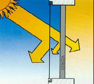 La mayor cantidad de calor directo de los rayos del sol es absorbida por la cortina y luego reflejada o disipada previniendo la radiación de calor del vidrio hacia el interior.